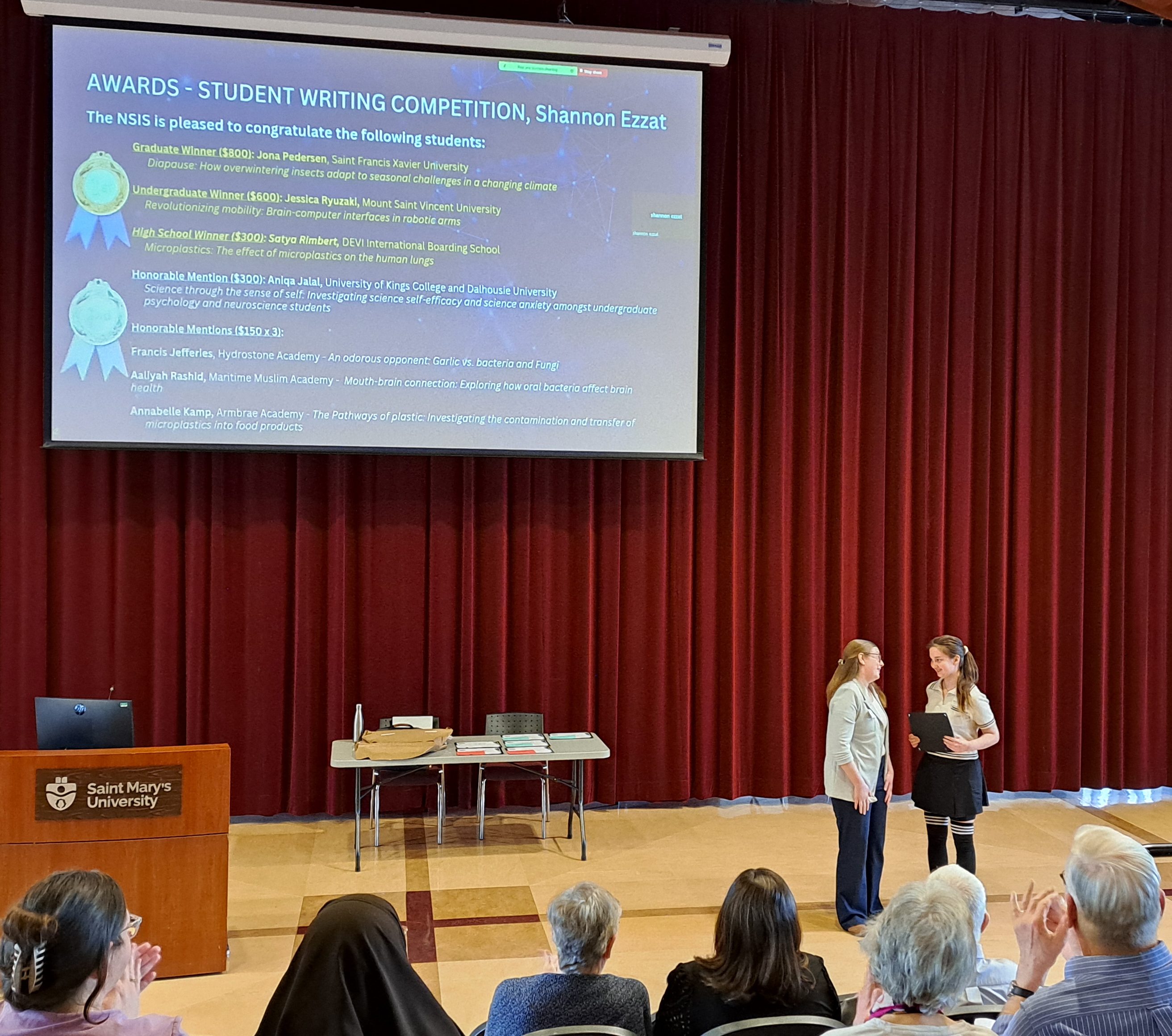 5 May 2025 – Big congrats to Jona Lopez Pedersen, who was the Graduate Student winner of the Nova Scotia Institute of Sciences (NSIS) Science and Technology Communication Award for their essay on diapause. We made the trip to Halifax for the awards ceremony!