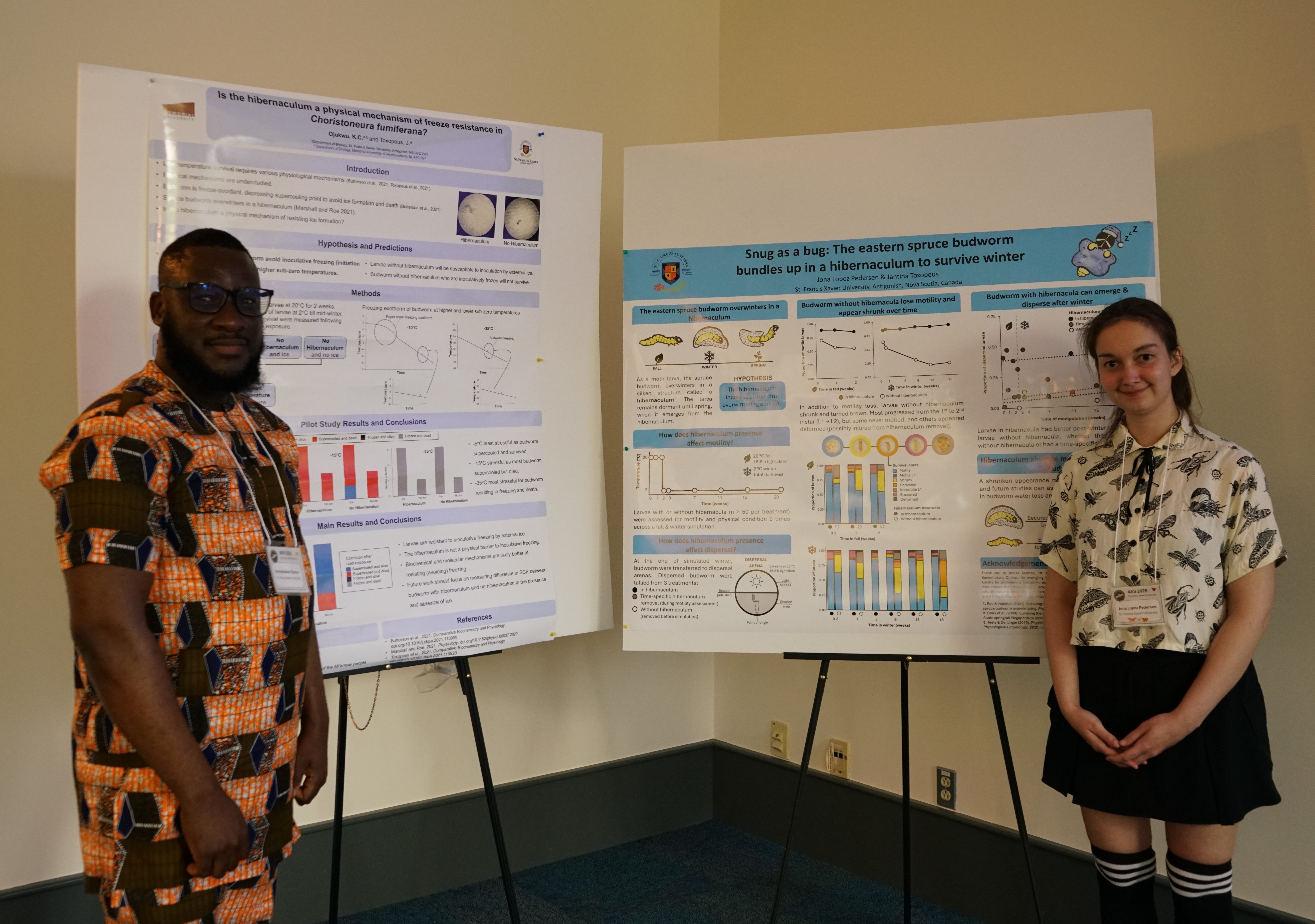 18 July 2025 – Well done to both Jona Lopez Pedersen and Kenechukwu Ojukwu for presenting their research on spruce budworm overwintering at ISEPEP (International Symposium on the Environmental Physiology of Ectotherms and Plants) in Vancouver, BC this week! Jantina also presented on an in-progress project with our freeze-tolerant crickets.