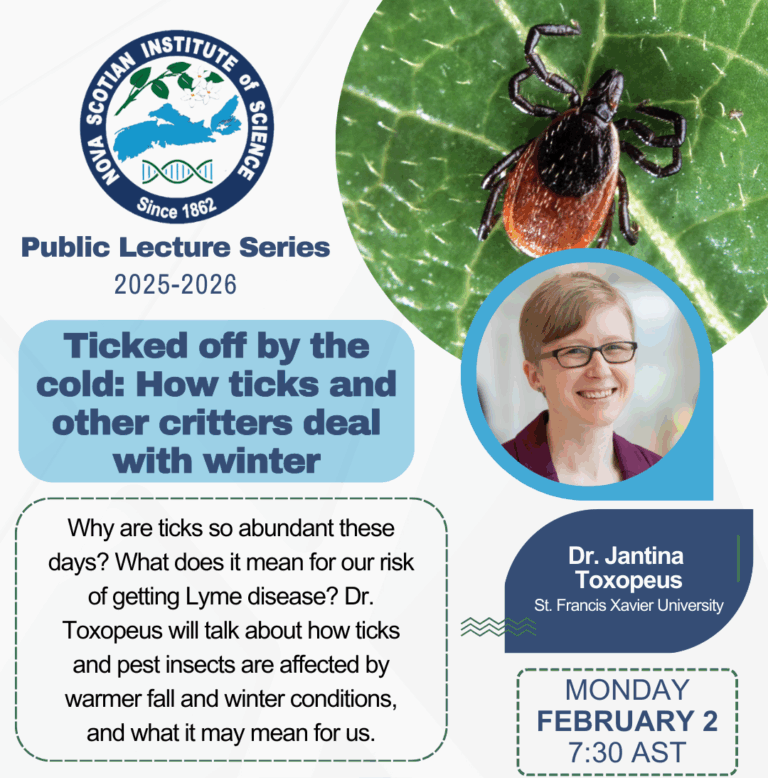 2 February 2026 – Thanks to all who came out to see Jantina’s talk for the Nova Scotia Insitute of Sciences on tick overwintering.