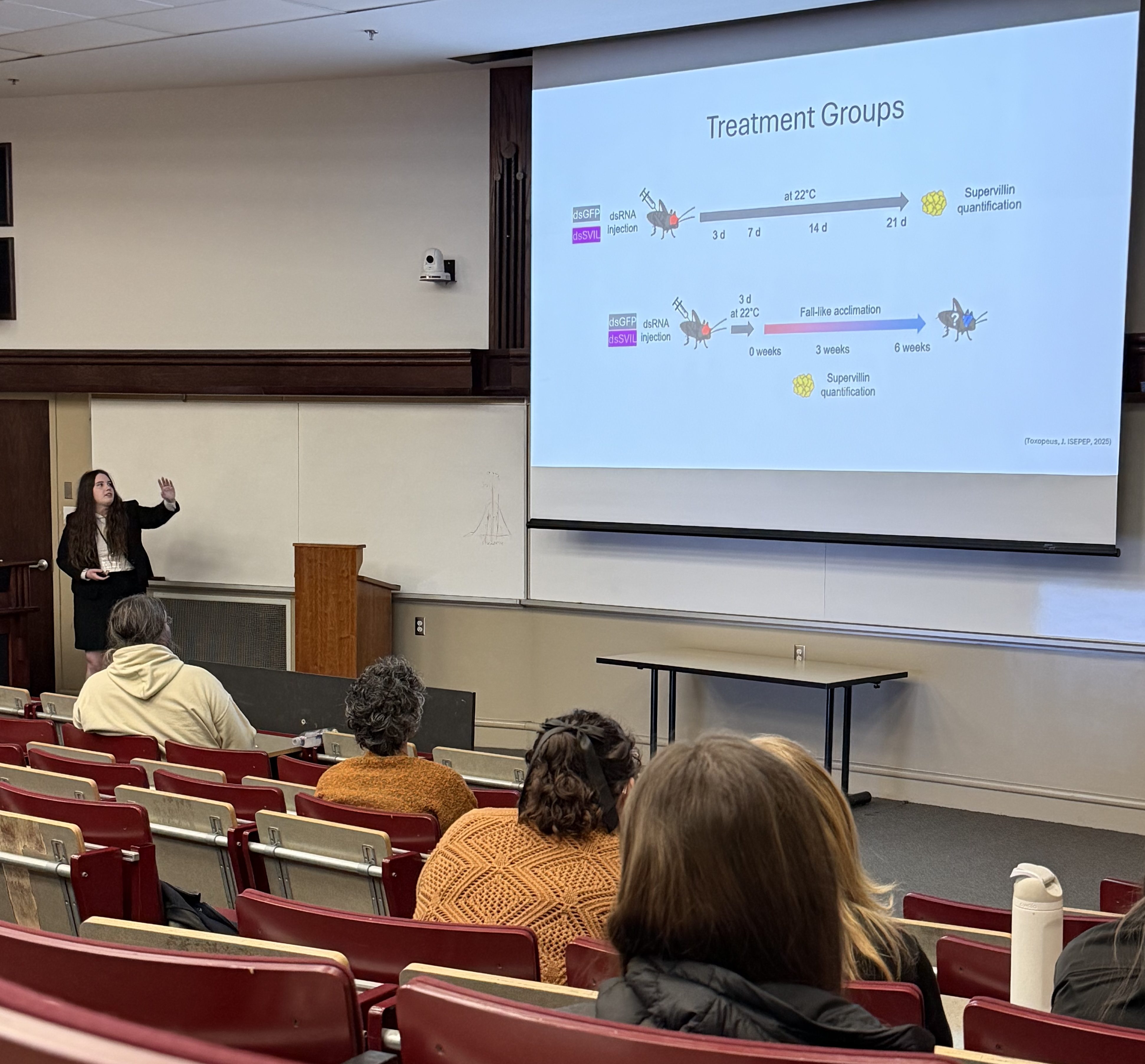 5 January 2026 – Welcome to María Alas Romero, who is conducting a project on how RNA interference affects the cytoskeleton of freeze-tolerant crickets as part of her Biol 499 Directed Study course! Welcome back to Jona Lopez Pedersen, who is staying on post-MSc to complete some additional spruce budworm work.