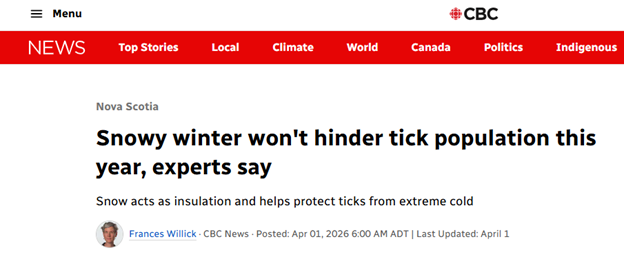 1 April 2026 – No foolin’ – the Toxopeus lab was quoted in a CBC news article about ticks!